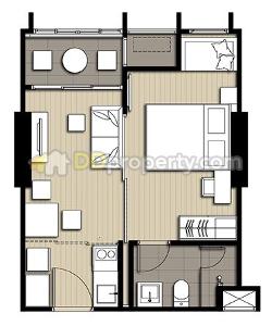 แบบห้อง One Bedroom 34 ตารางเมตร