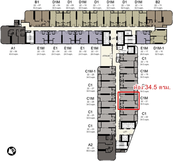 ขนาดพื้นที่ 34.0 ตารางเมตร
