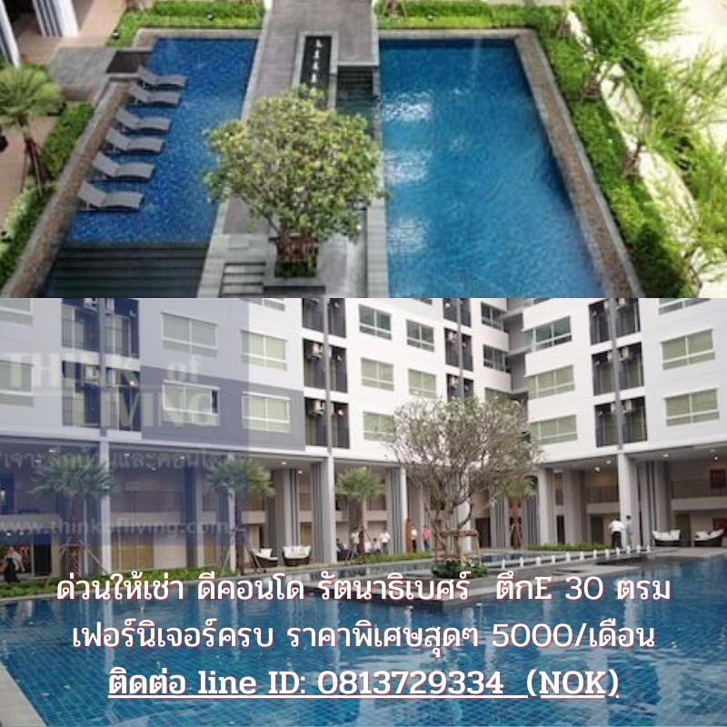 ให้เช่าคอนโดโครงการ ดีคอนโด รัตนาธิเบศร์ - 5000 ต่อเดือน ติดต่อคุณ Nok
