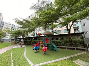 - ส่วนกลางครบครัน ทั้งสระว่ายน้ำ ฟิตเนส สวนหย่อม รถรับส่ง คีย์การ์ด