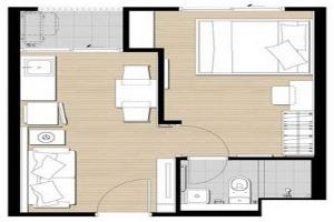 พื้นที่: 27 ตารางเมตร (ห้องแบบกั้นแยก ห้องนอน และ ห้องนั่งเล่น)