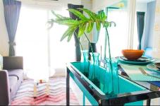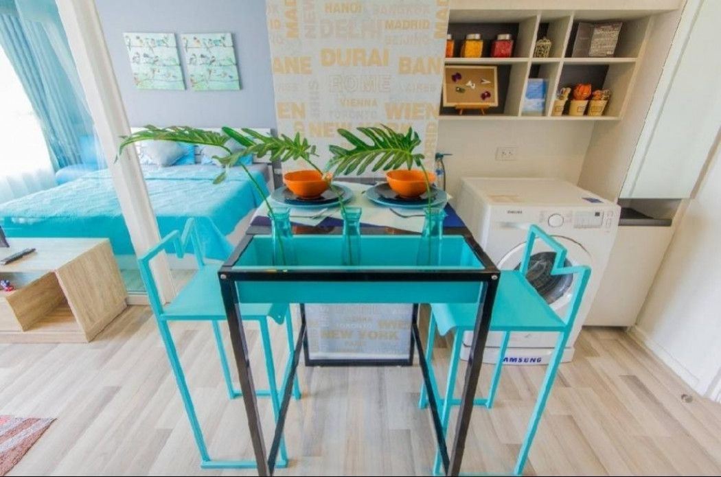 ยูนิต ไม่แออัด พื้นที่ 33 ตรม. มี 1 ห้องนอน 1 ห้องน้ำ ห้องตกแต่งสวยสไตล์ Chic Vintage แนวสีสันสดใสน่าอยู่ พร้อมเฟอร์นิเจอร์และเครื่องใช้ไฟฟ้า