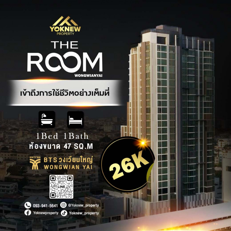 เช่าราคาดี ได้ห้องใหญ่หรูสุด ตกแต่งสวยงาม พร้อมย้ายเข้าอยู่ The Room Wongwianyai ใกล้ BTS วงเวียนใหญ่