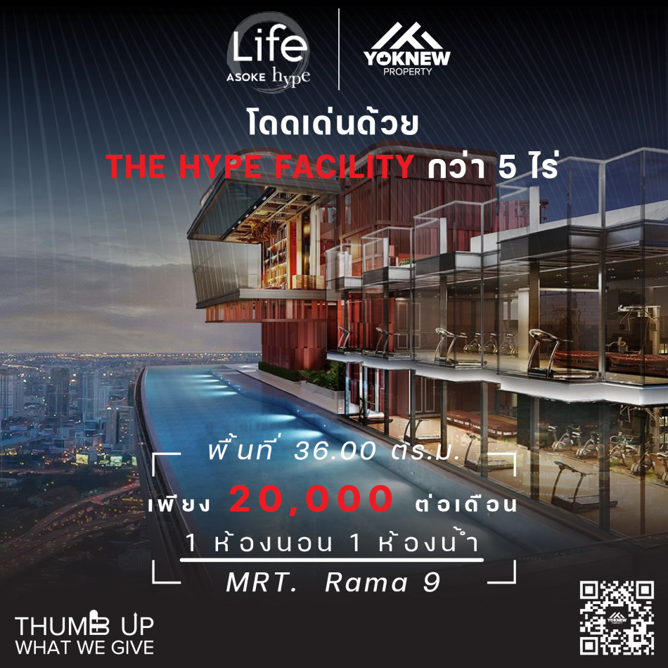 ว่างให้เช่า Life Asoke Hypeห้องเห็นวิวเมือง FACILITY กว่า 5 ไร่ ใจกลางอโศก-พระราม 9