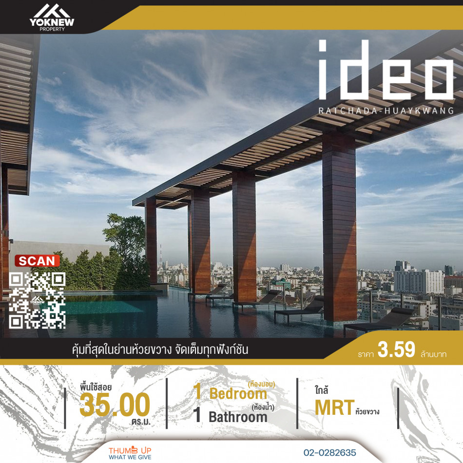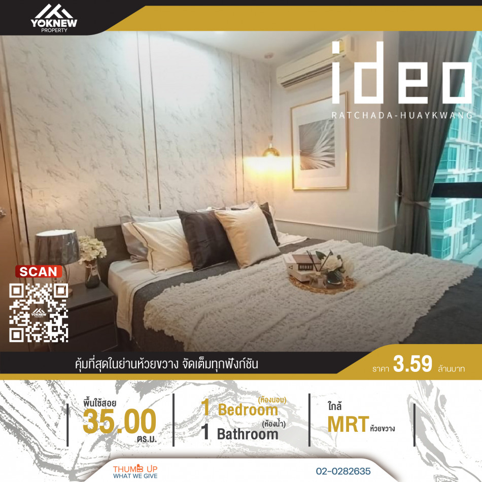 ขายคอนโด Ideo Ratchada – Huaykwang ห้อง Size 35 SQ.M เฟอร์ครบพร้อมเข้าอยู่
