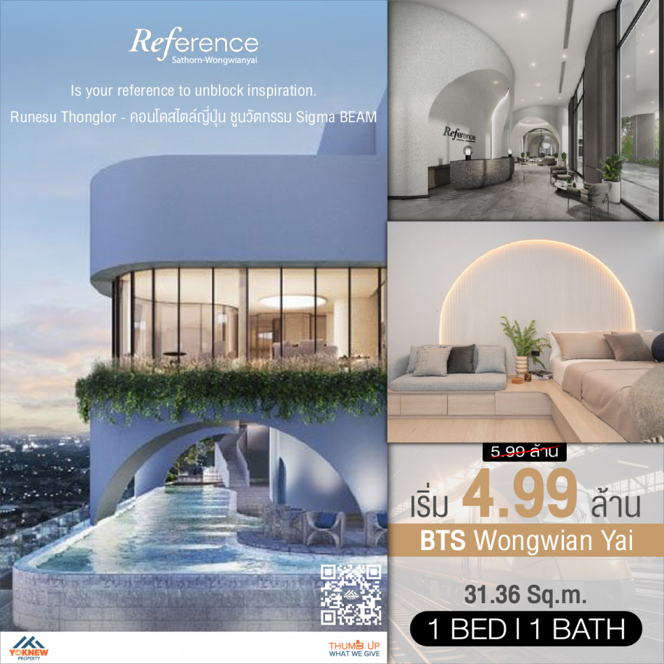 ขายReference Sathorn – Wongwianyai เริ่มต้น Size 24.19 SQ.M พร้อมรีบจองได้เลย ราคาดีมากๆ