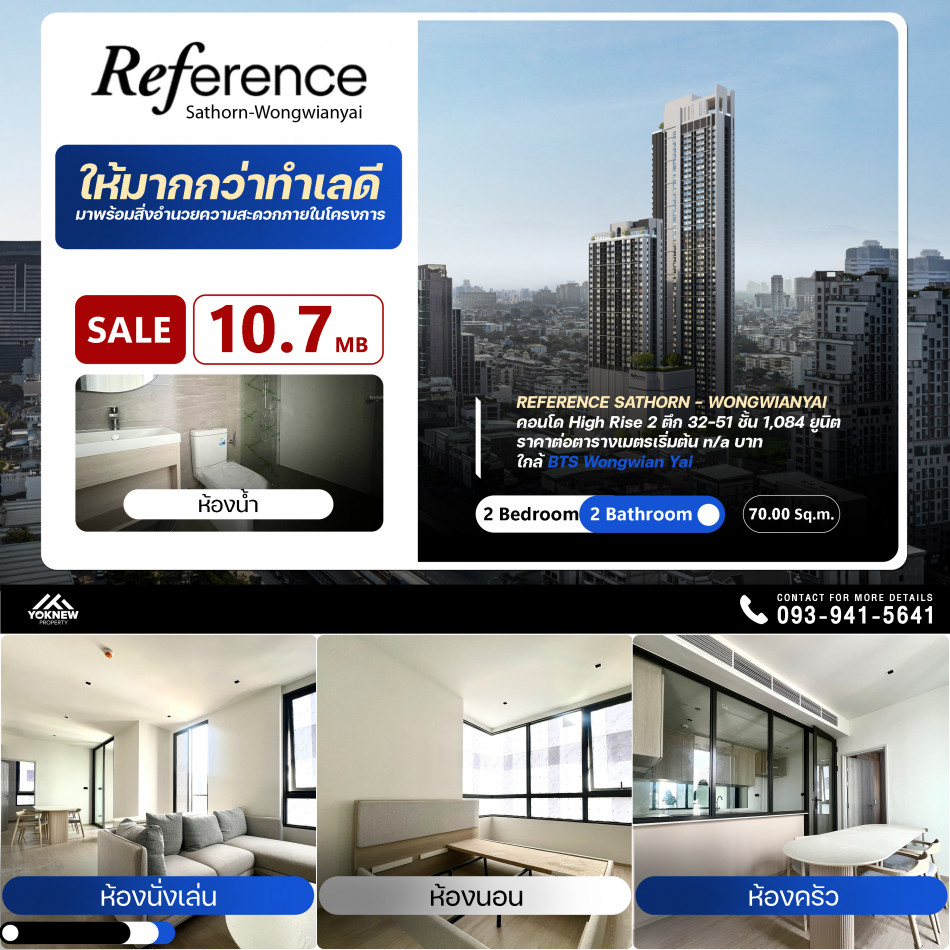 ขายด่วน Reference Sathorn - Wongwianyai คอนโดใหม่สร้างเสร็จพร้อมอยู่