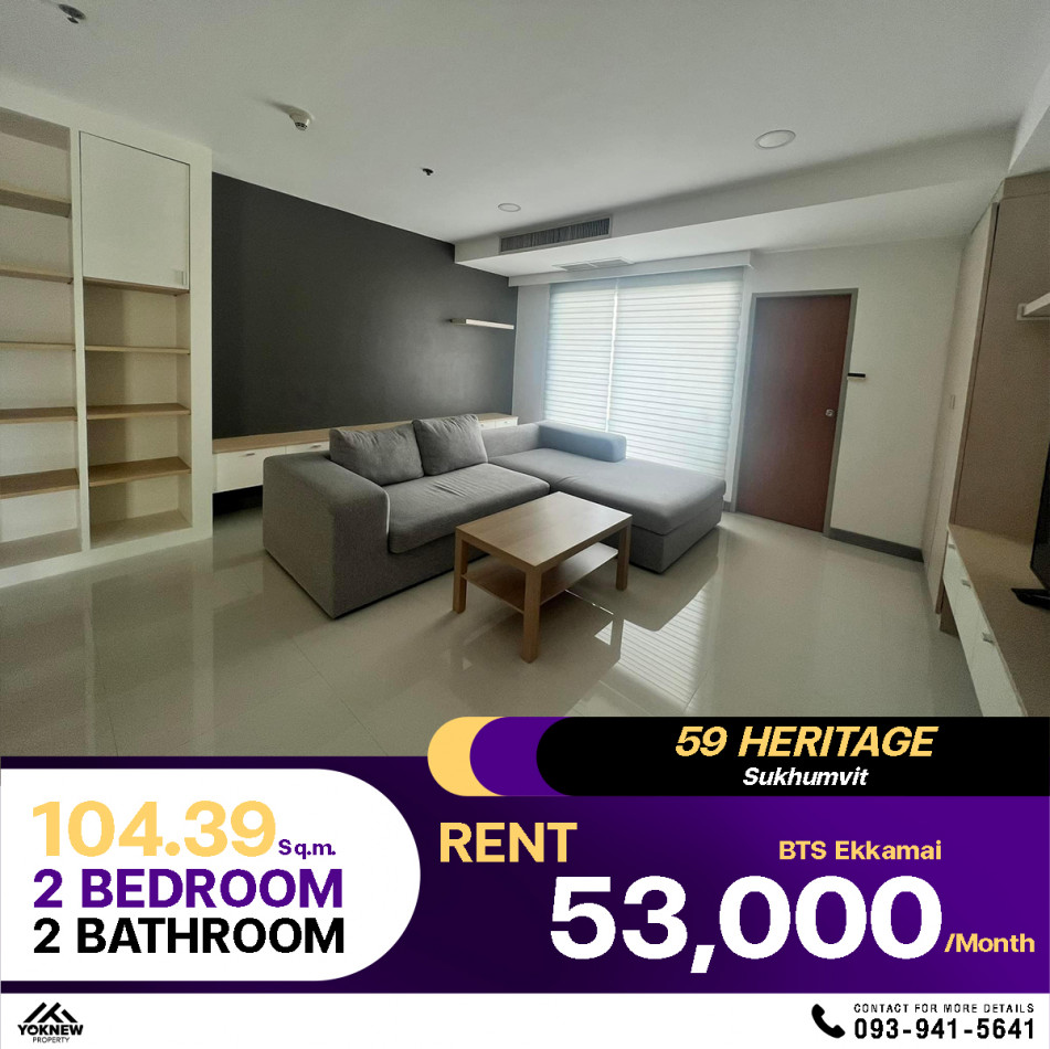เช่าราคาพิเศษ2 ห้องนอน 2 ห้องน้ำ ขนาด 104.39 ตร.ม. คอนโด 59 Heritage Sukhumvit