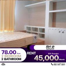 ว่างให้เช่าราคาดี คอนโด Siri At Sukhumvit 2 ห้องนอน 2 ห้องน้ำ ห้องตำแหน่งห้องมุม ตกแต่งครบ