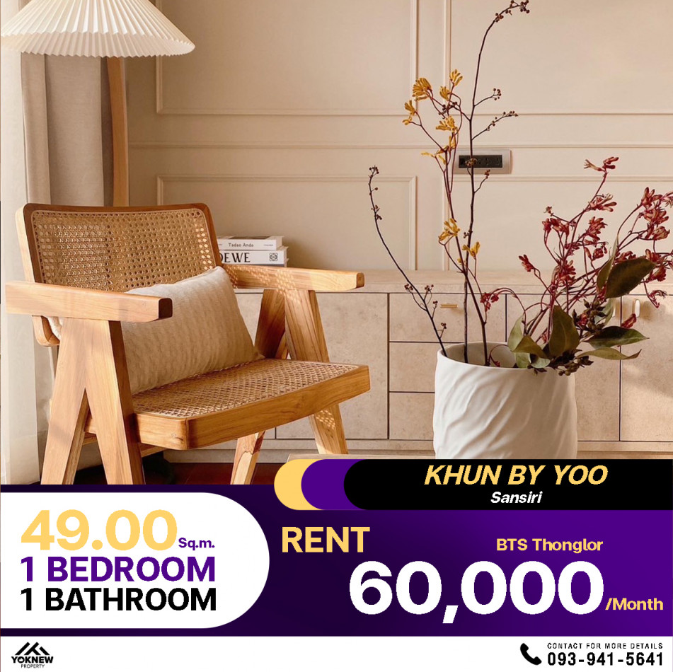 ว่างให้เช่า ราคาสุดพิเศษ 60,000 บาท คอนโด Khun by yoo Sansiri ใกล้ BTS ทองหล่อ