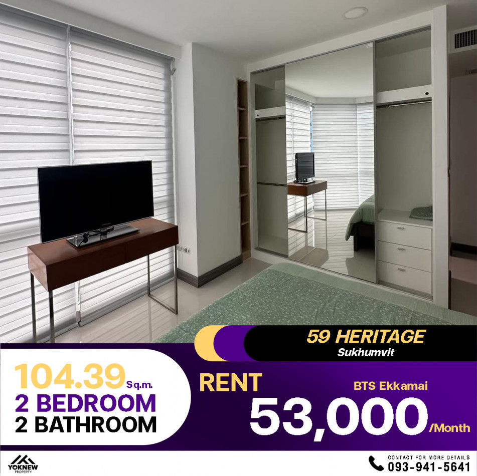 เช่าราคาพิเศษ คอนโด 59 Heritage Sukhumvit 2 ห้องนอน 2 ห้องน้ำ วิวโล่ง พร้อมให้เช่า