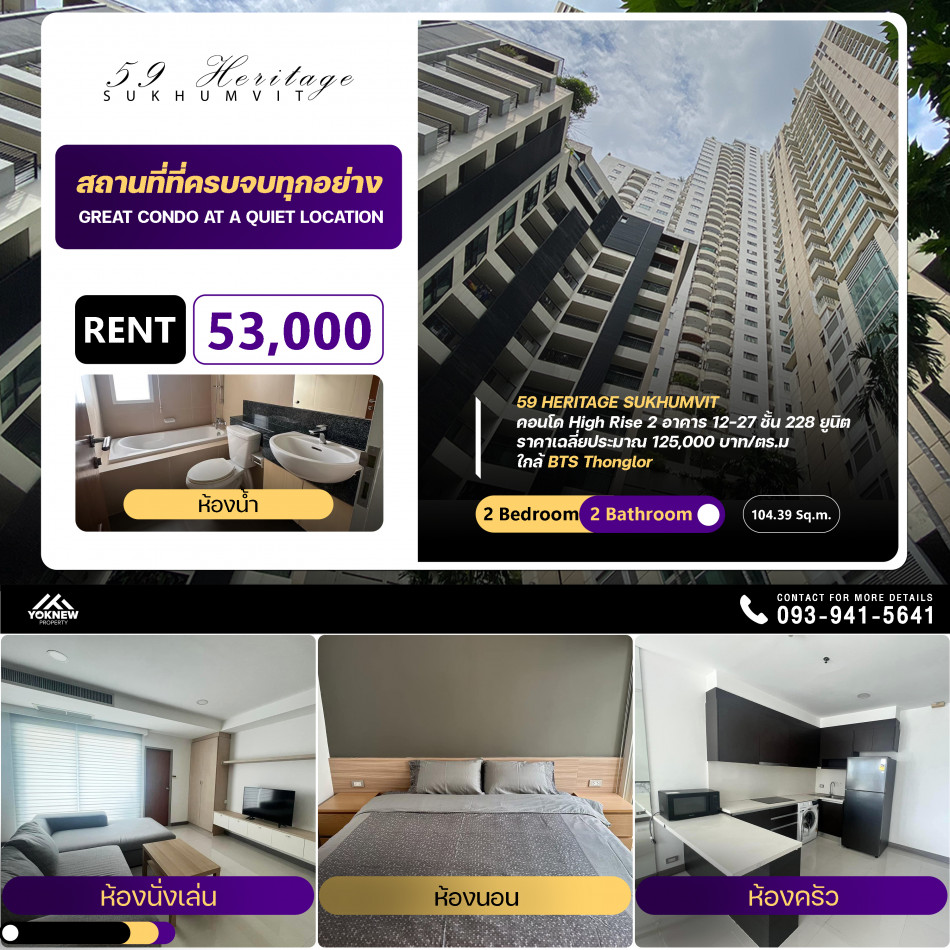 ขายราคาต่ำกว่าตลาด59 Heritage Sukhumvit ห้อง.ใหญ่เฟอร์นิเจอร์ครบชุด 2 ห้องนอน 2 ห้องน้ำ