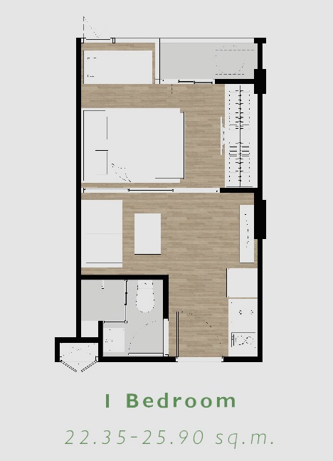 คอนโด Atmoz Ratchada-Huaikwang 1 ห้องนอน 1 ห้องน้ำ ห้องแบ่งพื้นที่ใช้สอยเป็นสัดส่วน