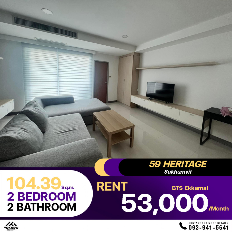 เช่าราคาพิเศษคอนโด 59 Heritage Sukhumvit 2 ห้องนอนเฟอร์นิเจอร์ครบ