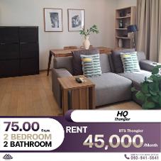 Condo HQ Thonglor 2 ห้องนอน 2 ห้องน้ำ เฟอร์นิเจอร์ครบ เช่าราคา 45,000 บาท