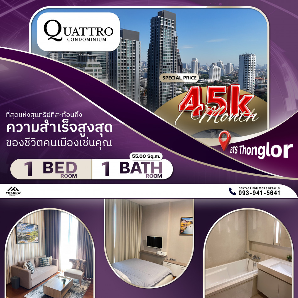 ปล่อยเช่า คอนโด Quattro By Sansiri ห้องตำแหน่งดี เฟอร์นิเจอร์ครบ พร้อมเข้าอยู่