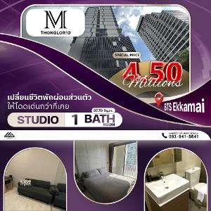 ขายราคาโดนใจ M Thonglor 10 คอนโดเลี้ยงสัตว์ได้ ห้องสตูดิโอ 1 ห้องน้ำ ใกล้ BTS เอกมัย
