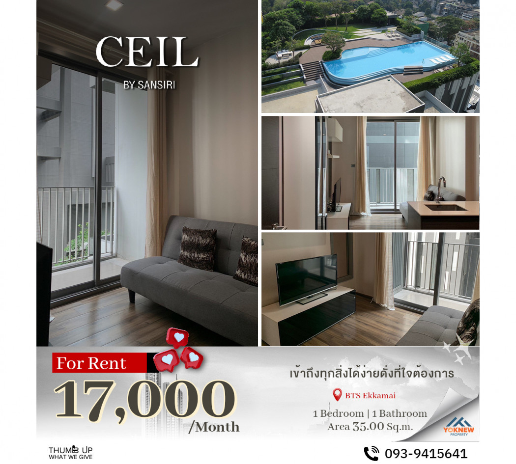 พร้อมให้เช่าคอนโด Ceil By Sansiri1 ห้องนอน 1 ห้องน้ำ ห้องวิวโล่ง ราคาถูกใกล้ BTS เอกมัย