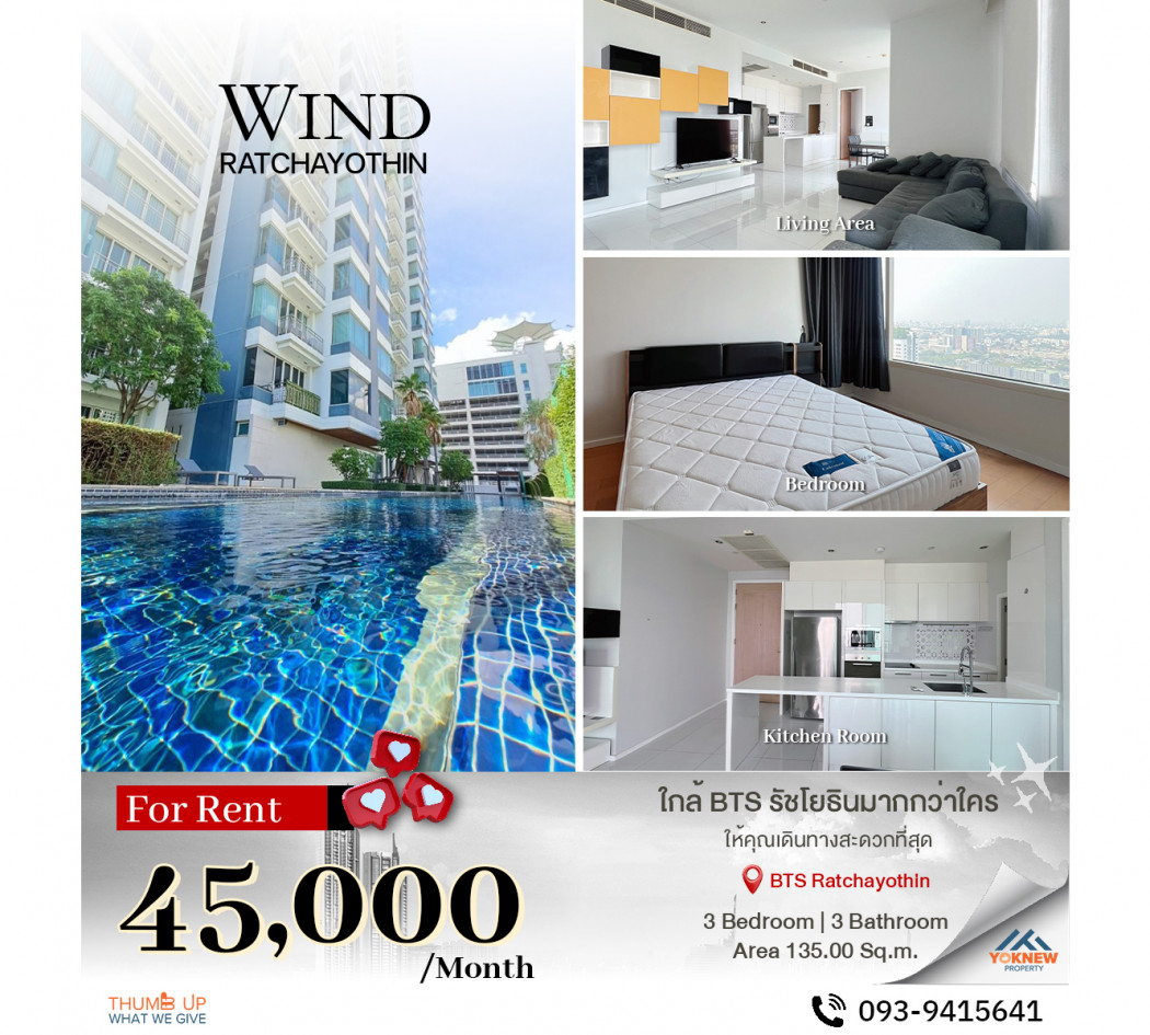เช่าด่วน Wind Ratchayothinห้อง Penthouses พื้นที่เยอะสุด วิวตึกช้าง ห้ามพลาด