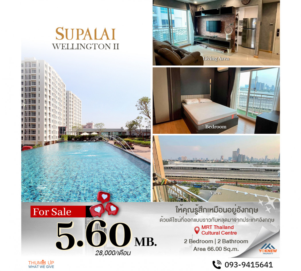 ขายคอนโดใกล้ MRT ศูนย์วัฒนธรรม Supalai Wellington II 2 ห้องนอน 2 ห้องน้ำ ห้องมุม