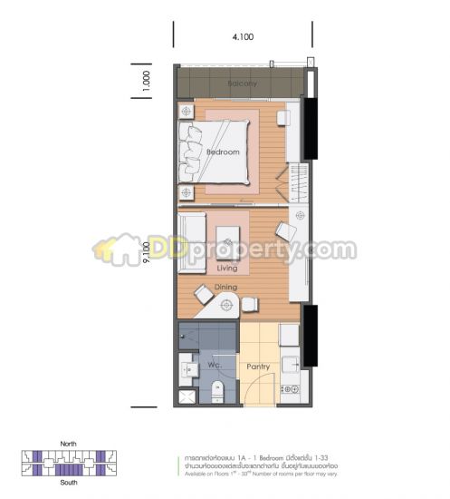 ให้เช่า คอนโด ABSTRACTS PHAHONYOTHIN PARK 1 ห้องนอน 1 ห้องน้ำ ขนาด 25 ตารางเมตร ชั้น 2