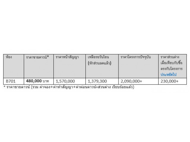 ขายดาวน์ห้อง ฺB701 บ้านเลขที่ 99/0789
