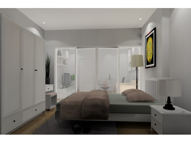 - ภายในห้องปูพื้นไม้ลามิเนต หนา 12 มม.