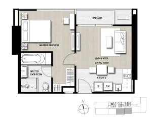 -ขายคอนโดสุดหรู HQ THONGLOR ชั้น 26 แบบ 2604 ขนาด 42.5 ตร.ม 1 ห้องนอน 1 น้ำ (แบบมีอ่างอาบน้ำ)