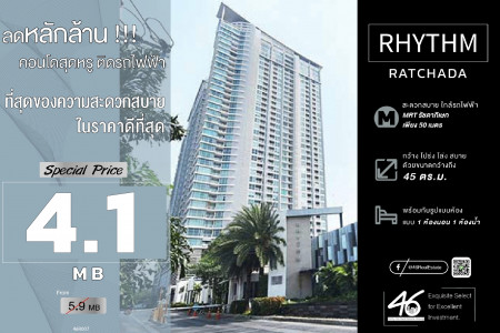 ขาย-เช่า Rhythm Ratchada ห้อง 1 ห้องนอน พื้นที่เยอะ ขนาด 45 ตร.ม.