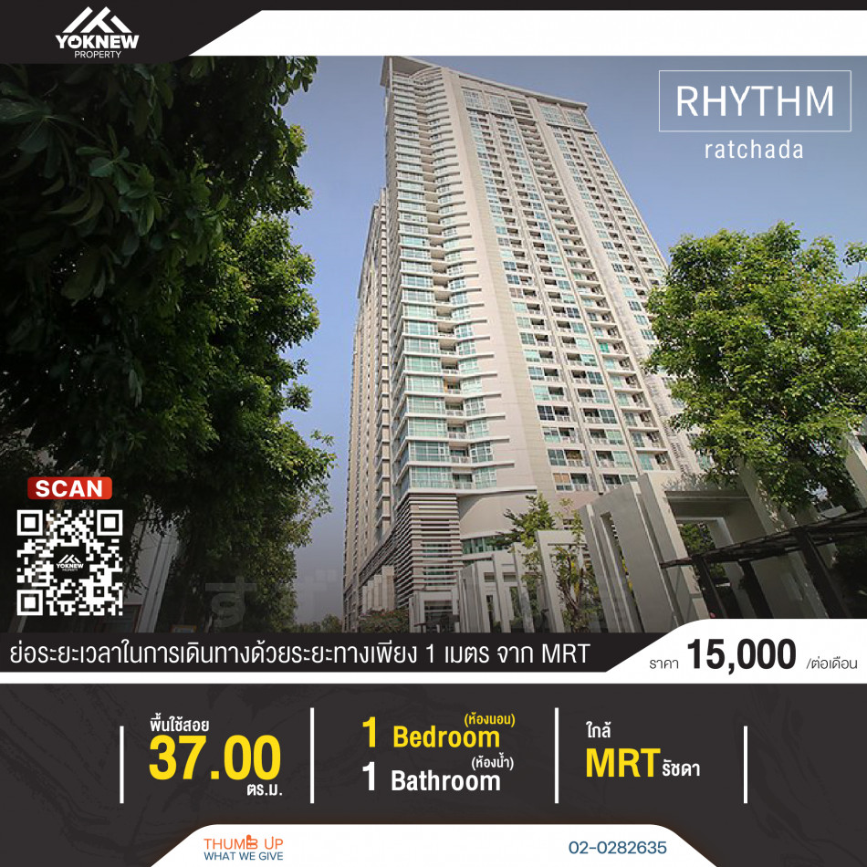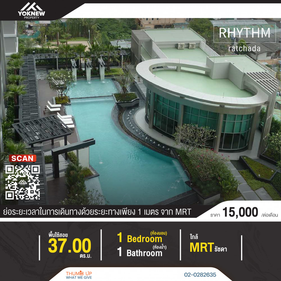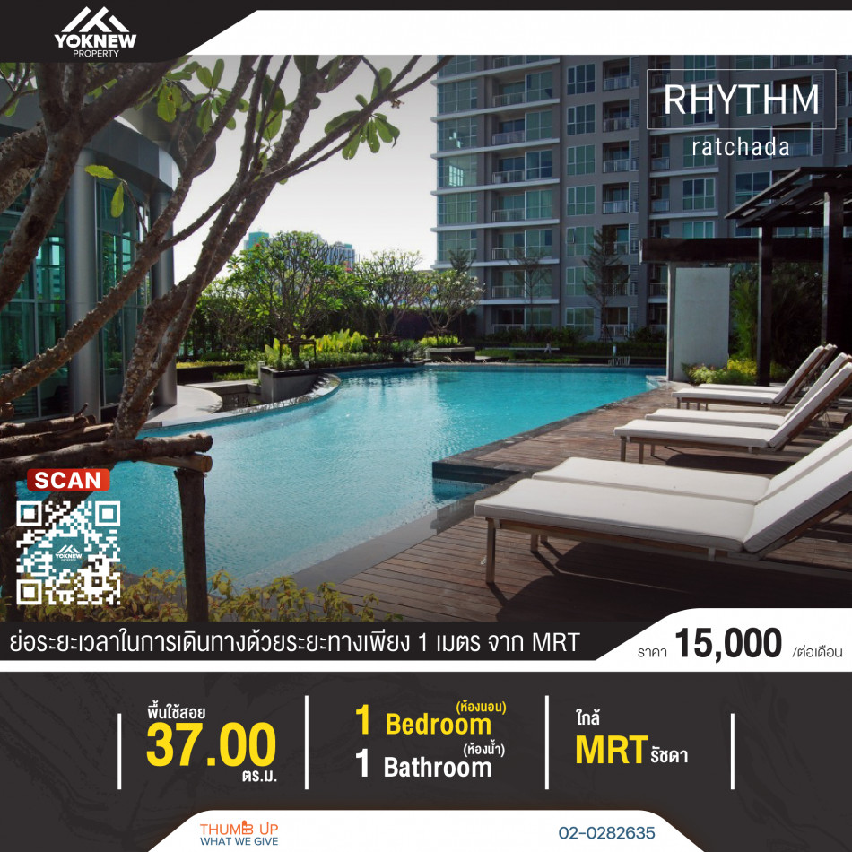 ขาย RHYTHM รัชดา 1 ห้องนอน 37 ตร.ม. สภาพเยี่ยม เฟอร์นิเจอร์ครบ ติด MRT รัชดาภิเษก