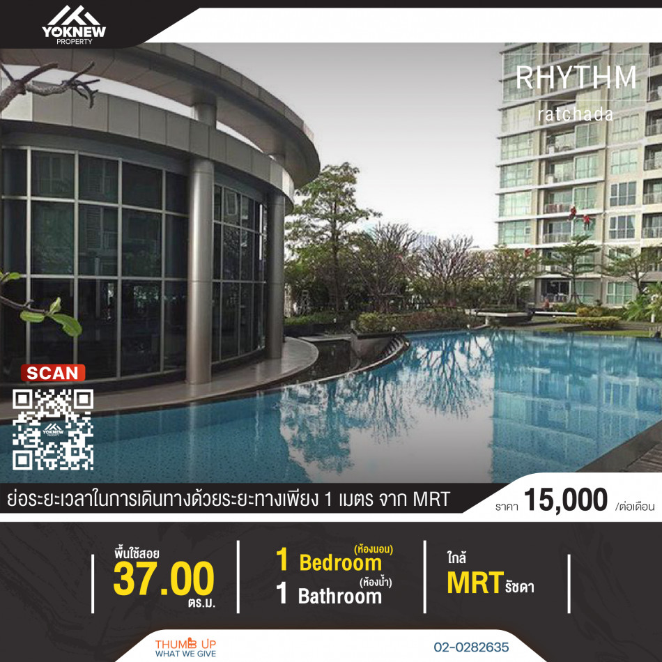 ขาย RHYTHM รัชดา 1 ห้องนอน 37 ตร.ม. สภาพเยี่ยม เฟอร์นิเจอร์ครบ ติด MRT รัชดาภิเษก